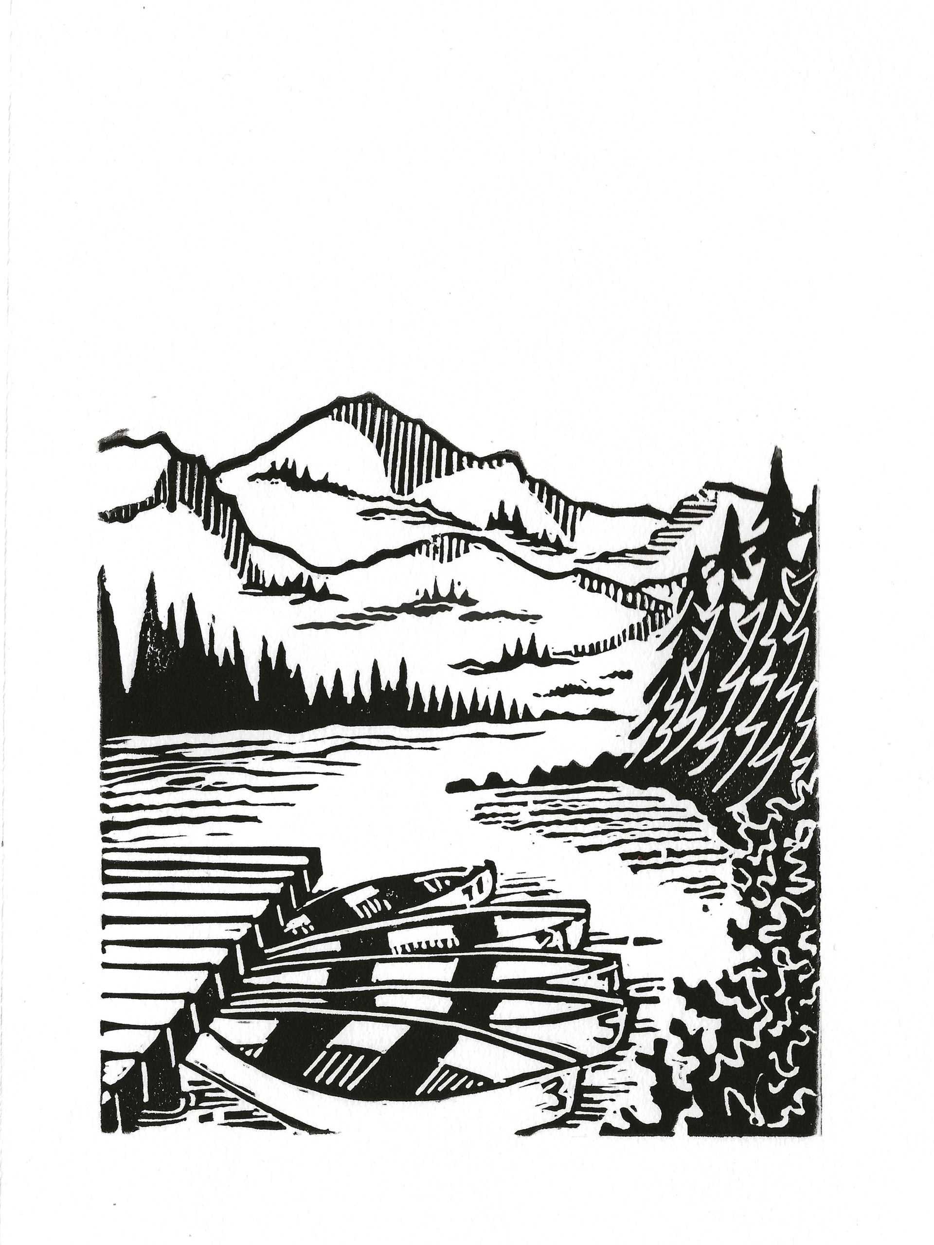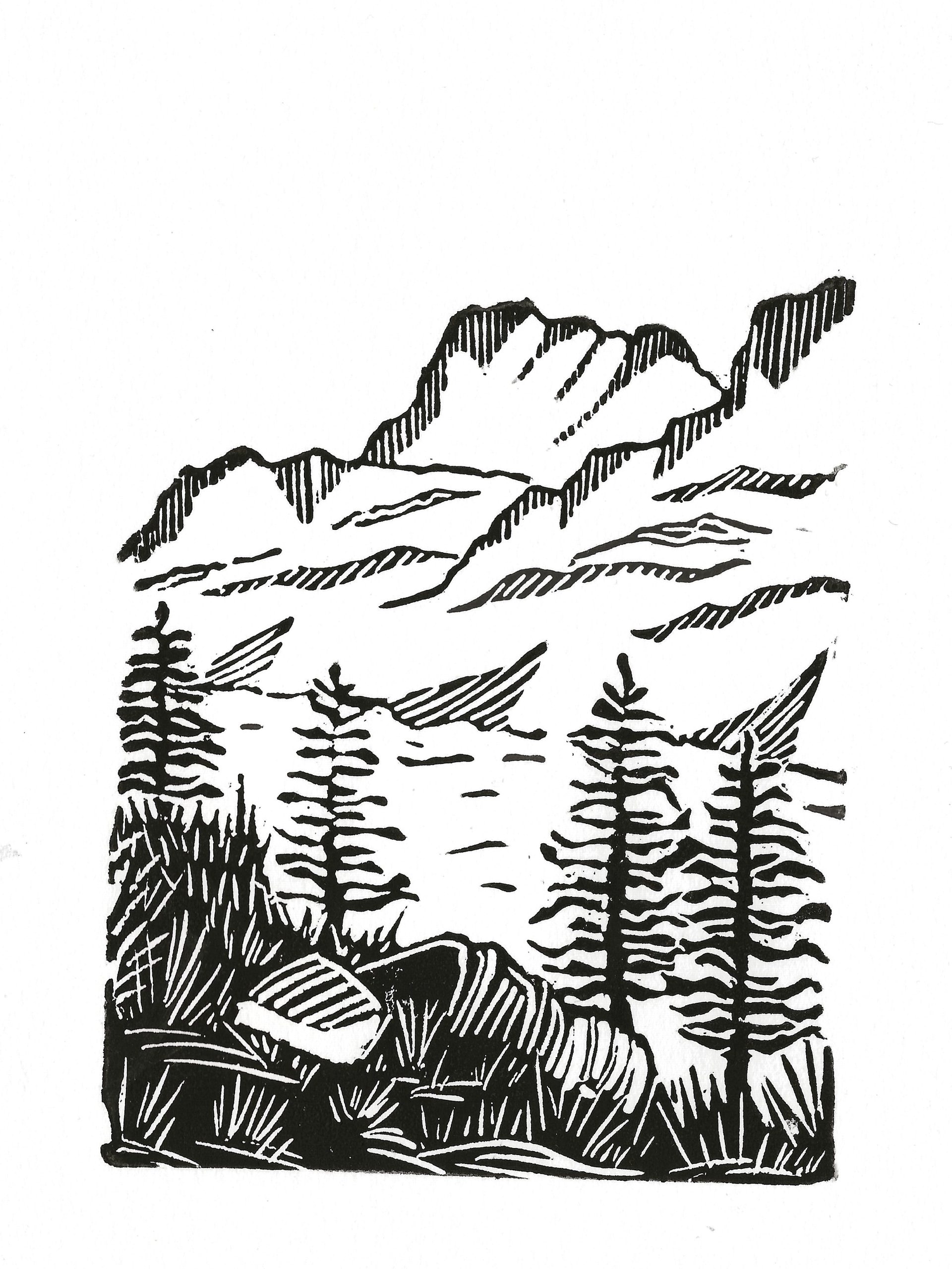 Emerald Lake, Yoho NP, Canada, Lino Print (2025)