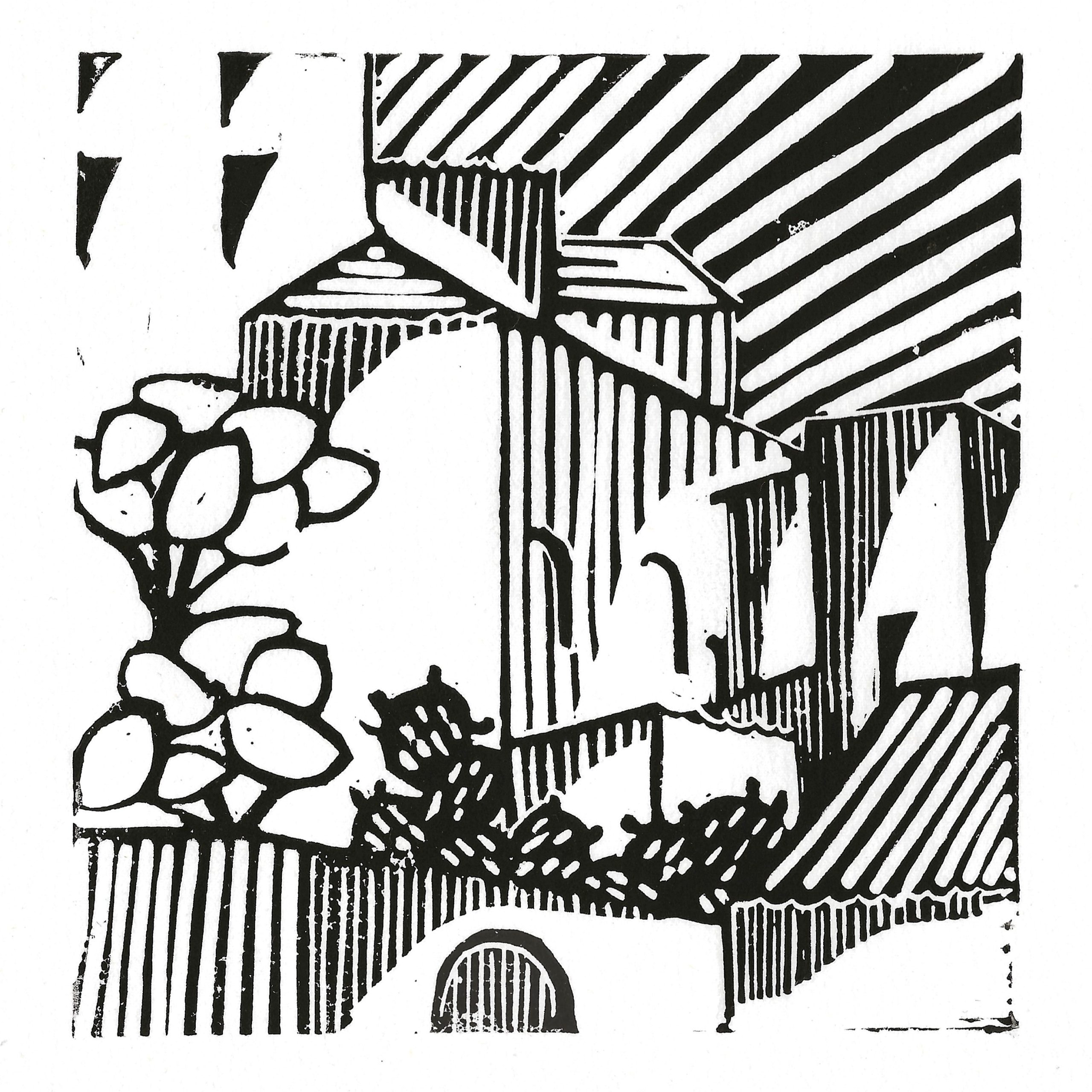 Fortaleza de Cadiz, Lino print (single and 2 colour) (2018)